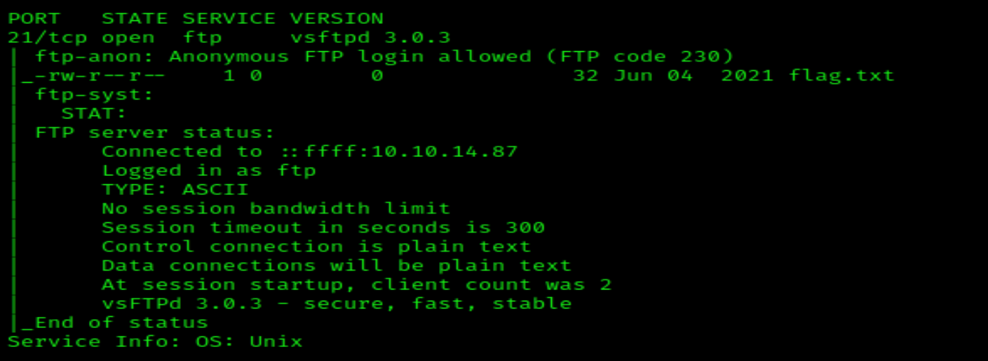 At the bottom of our scan results, we have data labeled Service Info. The OS is detailed as Unix.