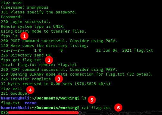 ls, we see thatflag.txtwas downloading in the directory we initiated the FTP session in. - We