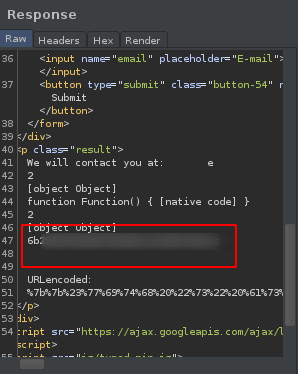 We can identify the template using some unique strings that will return status/error codes that validate if there is a targeted template in use. We’ll be entering these into the email field on the webserver’s landing page: