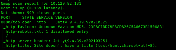 Jetty 9.4.39.v20210325, per our nmap scan results.