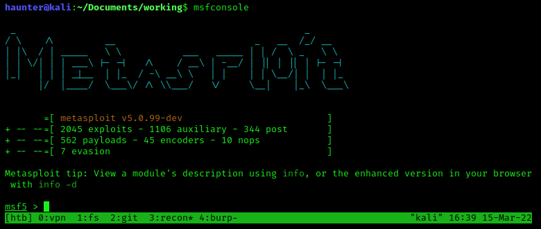 /login, where as the POST data was being sent to/j_spring_security_check. This is important for getting tools to work correctly. msfhas a huge DB of exploits. Check withsearchfrom inside the console.- If you can drop a file on a remote target, there is a high likelyhood of getting a reverse shell.