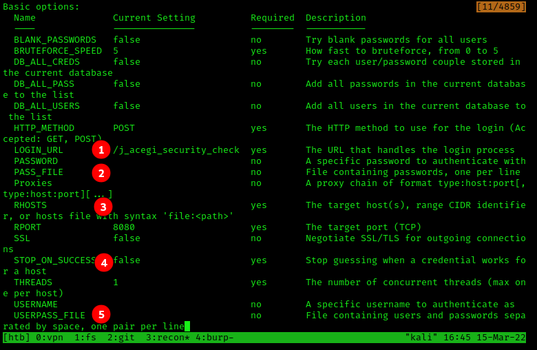 I seleced the module with use 3, and then took a look at the options with show info. Some options clearly reference bruteforce settings, so I went with this module.