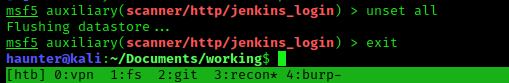 Before going back, I unset all options to restore their values to defaul and quite msfconsole with exit.
