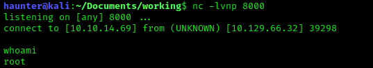 Once the local server was listening, I ran the Groovy script and got a reverse shell connection.